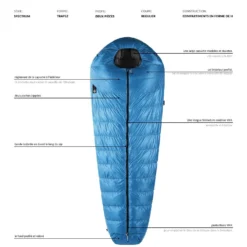 Sac de couchage -10°C avec ouverture centrale, garni de 600 g de duvet d’oie polonais de 800 cuin.