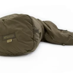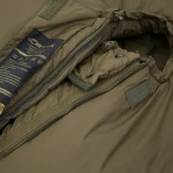 Le sac de couchage Survival One de Carinthia est prévu pour un usage 4 saisons, il est chaud, robuste et modulable. Il dispose d’une température limite confort de -18°C, norme EN 13537 / ISO 23537. La marque ne communique pas la température de confort, mais de notre expérience, celle-ci tourne autour de -10/-12°C. Il garni d’un triple sandwich de fibres creuses G-Loft et d’inserts de réflexion de la chaleur. Ce garnissage synthétique a un grand pouvoir gonflant et des performances thermiques optimales.