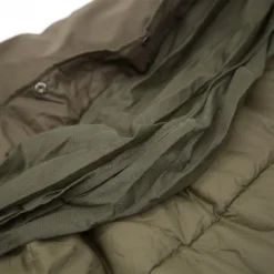 Fermeture éclair sur le côté gauche du sac de couchage avec zip double curseur, permettant de l’ouvrir par le bas ou le haut. La construction trapézoïdale pour plus de confort au niveau des pieds.