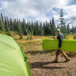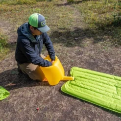 - Légèreté : les matériaux utilisés (polyester 20 deniers recylcé) et la forme momie (plus étroite au niveau des pieds) permettent à Exped de proposer un matelas très léger : 365 grammes, ce qui est une performance au regard du confort qu’il procure et des performances thermiques.