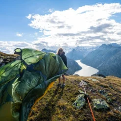 Tente 3 saisons, légère et autoportante. 2 portes et 2 absides. Version 3 places.