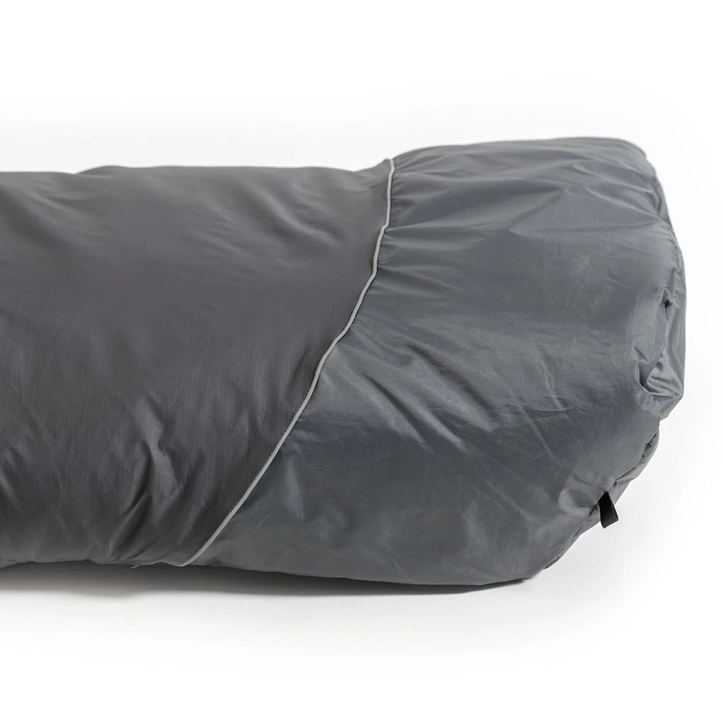 Ce sac de couchage dispose de tissu résistant en nylon 40 derniers et même 75 deniers au niveau des pieds. Cette extrémité est également imperméable, 3000 millimètres, afin ne pas se retrouver les pieds mouillés avec la condensation de la tente ou les nuits à la belle étoile. Sur le dessous, le tissu est antidérapant, pour ne plus glisser de son matelas.