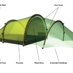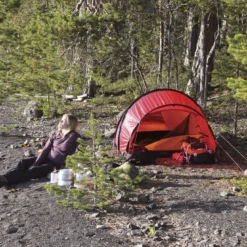 La tente de randonnée Hilleberg Anjan 2 GT combine confort et légèreté. Cette tente 2 places pèse seulement 2,10 Kg, ce qui est peu par rapport à l’espace de vie confortable. La chambre intérieure offre des proportions généreuses complétées par une abside spacieuse. De plus la hauteur intérieure est de 100 cm (au maximum) et de 81 cm (au minimum).
