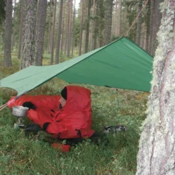 Léger, il ne pèse que 580 grammes. Il s’avère parfait pour protéger un sac de l’humidité un sac couchage et idéal pour s’en servir la journée comme poncho (avec un sac à dos).