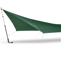 L’Hilleberg Tarp 5 est un abri minimaliste, ultra-lĂ©ger et solide pour un usage en solo. Il est fabriquĂ© en Kerlon 1000 qui est un tissu nylon siliconĂ© extrĂŞmement lĂ©ger mais aussi très rĂ©sistant Ă la dĂ©chirure. Ce tarp est conçu pour protĂ©ger une personne tout en offrant suffisamment de place pour stocker du matĂ©riel. Les attaches sont composĂ©es d’un Ĺ“illet et d’un renfort en tissu . Vous pourrez les utiliser soit pour fixer des haubans, soit pour glisser la pointe de votre bâton de randonnĂ©e.