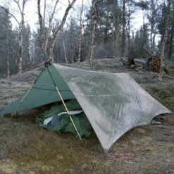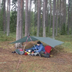Le tarp Hilleberg UL 10 est disponible en vert ou rouge. Piquets sur la photo non inclus.