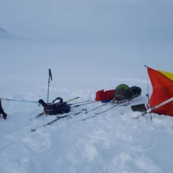 Le Windsack d’Hilleberg est particulièrement bien pensé. Fabriqué en nylon siliconé, il est doté d’une fermeture à glissière (4 curseurs) sur le haut du sac afin de passer 3 têtes. Il est muni de sangles permettant de le fixer au sol avec des ancres ou sardines (non inclus) et d’une ligne de sécurité à fixer à la taille. Il est possible de l’ancrer solidement afin que l’abri ne s’envole pas. Il offre une vrai protection contre les éléments extérieurs.