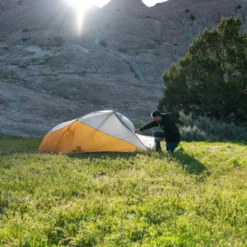 Le montage de la tente est aisé et le rangement est facilité par le système d’emballage qui consiste à rouler les éléments de la tente dans un rectangle en nylon qui sert à la fois de sac de rangement et de petit tapis que vous pourrez disposer au niveau de l’abside pour conserver vos affaires au sec.