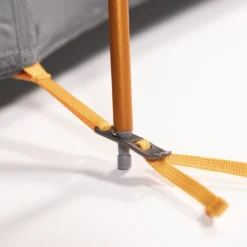 Cette tente dispose de trois fenêtres d’aération favorisant la circulation de l’air. Les points d’ancrage par haubans stabilisent la tente et la rendent résistante au vent.