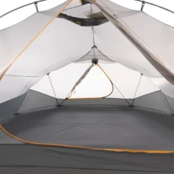 L’habitacle intérieur dispose d’une surface au sol suffisante pour entreposer 4 matelas de taille standard. Les murs en tissu moustiquaire donnent une sensation d’ouverture vers l’extérieur d’autant qu’il est possible d’escamoter l’abside pour profiter de la vue. La hauteur sous toit est confortable : 113 cm.