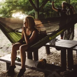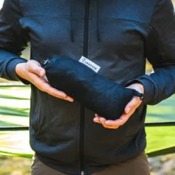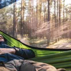 Le hamac est fabriqué en nylon Ripstop durable, résistant et supportant jusqu’à 250 kg, tout en restant léger et entièrement respirant.