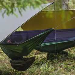 Le Draka Hammock de Lesovik est une solution complète de couchage pour vos futures nuits au bivouac ou en camping. Il s’agit d’un hamac léger intégrant une moustiquaire amovible et le système de suspension, et d’un filet de rangement pour entreposer quelques petits objets.