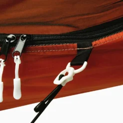 Le Draka diispose de 4 points d’attache latĂ©rale pour fixer les haubans. Ils sont destinĂ©s Ă rendre le hamac plus spacieux et Ă faciliter l’accès au sac de couchage ou l’organisation Ă l’intĂ©rieur. Elles vous aideront Ă©galement Ă repĂ©rer les petits objets laissĂ©s Ă l’intĂ©rieur du hamac.