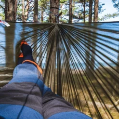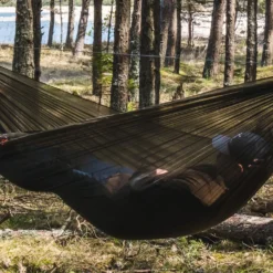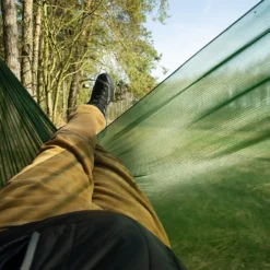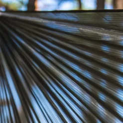 Il est fabriqué dans un nylon Micromesh « Monofil », un tissu plus durable et résistant à la charge mécanique que les tissus légers ordinaires. Le Monofil n’est pas enduit de PU ou de silicone, ce qui lui confère une respirabilité et une semi-transparente. Ainsi, le hamac seul pèse seulement 175 grammes. Il est destiné aux personnes qui souhaitent alléger le poids du sac à doc sans sacrifier sa polyvalence, la facilité d’utilisation et le confort.