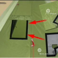 Il est équipé d’une trappe de cheminée pour pouvoir utiliser le tipi avec un poêle à bois. Un velcro « Oxford Patch » permet au tuyau de sortir de l’abri sans faire fondre le tissu environnant. Il est cependant nécessaire d’utiliser un collier thermique pour faire le tour du conduit de cheminée afin de protéger le patch Oxford et le tissu. Le poêle à bois n’est pas fourni avec l’abri. Vous devez utiliser votre propre solution. Si vous n’utilisez pas de poêle à bois, un patch de protection permet de fermer hermétiquement la trappe de la cheminée.