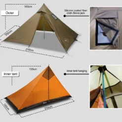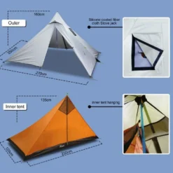 Ce tipi léger est optimisée pour dissiper le vent, la pluie et la neige et offrir une grande protection face aux intempéries. Le montage est simple et s’effectue à l’aide d’un mât central (vendu séparément).