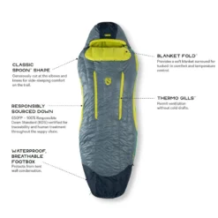- de 2 ouvertures Thermo Gills qui régulent la température intérieure du sac de couchage sans avoir besoin de l’ouvrir par temps froid.