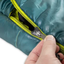 Il s’agit d’un sac de couchage confortable, bien large, pratique d’utilisation, qui séduira les campeurs au sommeil léger. Il dispose d’un drap amovible doux pour d’hygiène. Vous n’aurez que ce drap à laver à votre retour chez vous. Une petite housse au niveau de la tête permet de maintenir un oreiller en place. Dans le même but, un emplacement a été prévu pour y glisser votre matelas gonflable et éviter que celui-ci glisse durant la nuit. Ce compartiment est prévu pour accueillir le matelas autogonflant Nemo Roamer mais s’adaptera à votre propre matériel. Pour faciliter le montage et démontage de votre campement, vous pouvez conserver le matelas dégonflé et le rouler avec le Jazz Duo dans la housse de rangement.