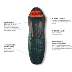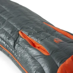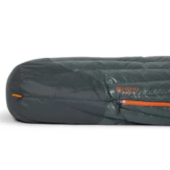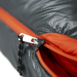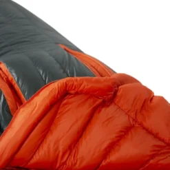 Sac de couchage, garni en duvet de canard 800 cuin, en forme de cuillère pour plus de confort. Température confort : -2°C.