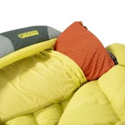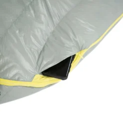 Sac de couchage, garni en duvet de canard 650 cuin, modèle femme, forme cuillère. Température de confort -1°C.