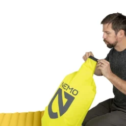 Le sac-pompe Vortex livrĂ© avec le matelas facilite le gonflage, permet d’Ă©conomiser votre souffle et limite l’insertion d’humiditĂ© dans la structure des boudins pneumatiques.