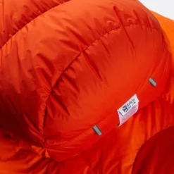 Le sac de couchage Andes Infinium 1000 de Rab a été optimisé pour proposer un excellent ratio chaleur/poids/encombrement. Il est garni de 1000 grammes de duvet d’oie européen hydrophobe certifié RDS de 800 cuin. La marque ne communique pas de température de confort pour ses sacs de couchage grand froid, mais de notre expérience, celle-ci est d’environ -16/-18°C.