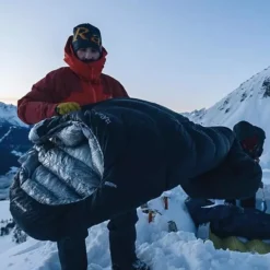 La demi-fermeture éclair à double zip est protégée sur toute sa longueur d’un rabat anti-froid. Le sac de couchage est équipé d’un cordon de serrage élastique au niveau de la capuche et d’un second pour la collerette. Le tissu du Mythic Ultra 360 est un Super Lightweight Ripstop Nylon ultrafin de 7 deniers pour assurer une légèreté maximale