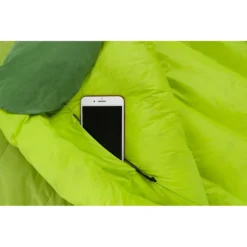 - Fermetures zippées du sac de couchage. Design à triple curseur (Free-Flow) permettant d’optimiser l’aération. La fermeture située sur la moitié du côté droit offre une grande liberté de mouvement pour les bras et permet de convertir le tiers supérieur du sac de couchage en mini quilt. La fermeture éclair à double curseur sur toute la longueur gauche et celle au niveau des pieds permettent de transformer le sac de couchage en quilt lorsque la température est plus élevée que prévue.