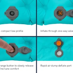 Pour faciliter le gonflage, le matelas est livré avec un sac de rangement faisant office de sac-pompe. Il suffit alors d’emprisonner l’air dans le sac et ensuite de l’expulser dans les cellules du matelas. Ce dispositif est facilitateur et évite d’envoyer de l’air humide à l’intérieur du pneumatique.