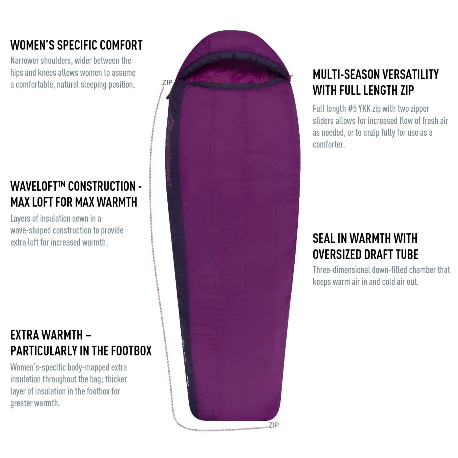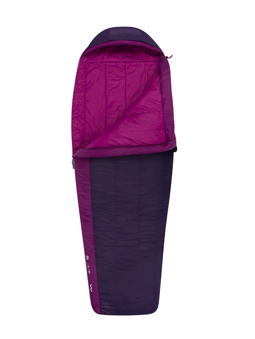 Le Quest QuII de Sea To Summit est un sac de couchage conçu spécialement pour les femmes. Il s’agit d’un couchage doté d’épaisses couches d’isolation en fibres synthétiques Waveloft. Le Quest QuII a plus de garnissage au niveau des pieds, limitant ainsi la sensation de froid. Ce sac de couchage offre une température confort de -1°C, si bien que vous pourrez l’utiliser durant 3 saisons : au bivouac en montagne, nuitées en refuge…