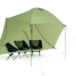 - En mode Hangout à l’aide de 2 bâtons de randonnées ou 2 mâts (vendus séparément), pour profiter d’un abri spacieux et ouvert.