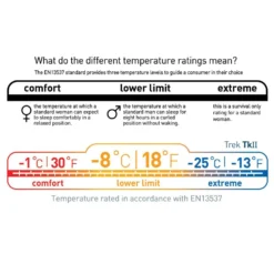 Grâce aux caractéristiques techniques, le Trek TK II obtient une température confort de -1°C ce qui est performant au regard du volume et du poids total du sac de couchage.