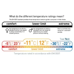 Grâce aux caractéristiques techniques, le Trek TK III obtient une température confort de -5°C ce qui est performant au regard du volume et du poids total du sac de couchage.
