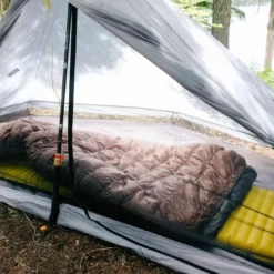 Sa large porte, qui abrite une abside, peut être ouverte intégralement, permettant ainsi de jouir du panorama depuis l’intérieur de la tente. Sa hauteur de 122 cm offre un beau volume et sa surface pour une personne seule laisse de la place pour entreposer de l’équipement. Une ventilation sommitale et une bande moustiquaire sur toute la partie basse de la tente assurent une bonne aération.