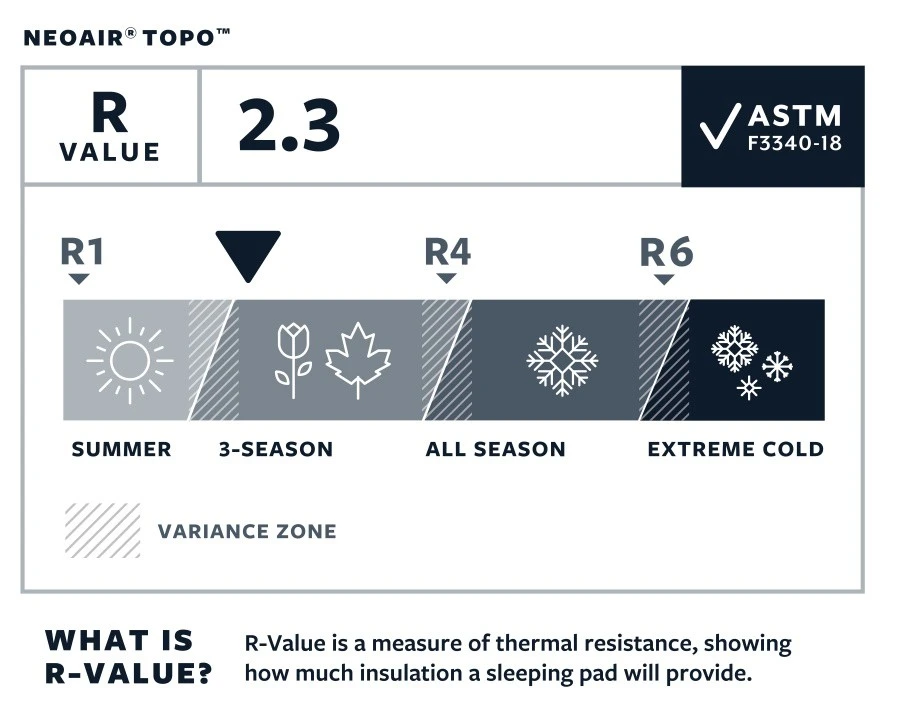 A l’intérieur, la structure WaveCore vous isolera du froid et vous apportera plus de confort qu’un matelas non isolé. La technologie WaveCore est une couche de cloison ondulée à l’horizontale qui ralentit les pertes de chaleur par convection sans prendre de place supplémentaire. R-Value de 2.3 selon la norme internationale ASTM F3340-18.
