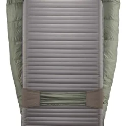 - Connecteurs SynergyLink : sangles amovibles qui permettent de connecter un matelas et le sac de couchage pour minimiser les pertes de chaleur. L’avantage de ce dispositif, c’est que vous restez bien bordé toute la nuit et que vous ne risquez pas de glisser en dehors du matelas.