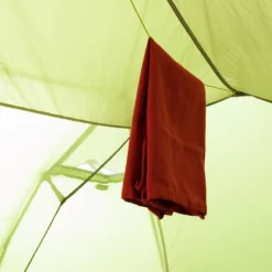La tente est bien accessoirisĂ©e : poches dans la chambre, fil Ă linge sous l’auvent, possibilitĂ© d’accrocher son casque entre les deux toiles, multiples possibilitĂ©s de ventilation et de position de la porte… La housse de rangement dispose de sangles permettant d’accrocher la tente facilement sur le ceintre du vĂ©lo.