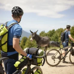 Le Trailpack II de Vaude est un sac à dos prévu pour le bikepacking. D’une capacité de 8 litres, il est flexible, imperméable et dispose un large panel d’utilisations. Il est muni de jointures imperméables et se ferme par enroulement. Il est relié au dos par le bas et les côtés de façon à pouvoir insérer d’autres types de sacs/bagages ou une poche d’hydratation de 2 litres. Un casque, une veste mouillée ou d’autres équipements peuvent se ranger derrière le rabat avant avec ses 2 sangles de compression.